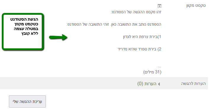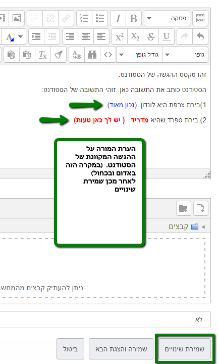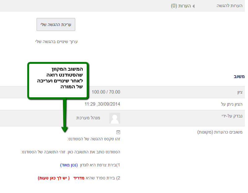 4) עריכת טקסט ההגשה של הסטודנט על-ידי המורה: