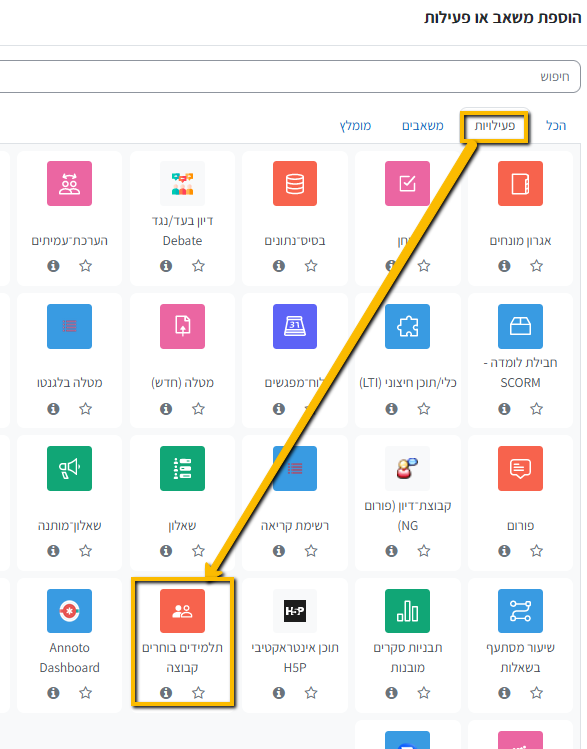 -הוספת פעילות בשם "תלמידים בוחרים קבוצה":