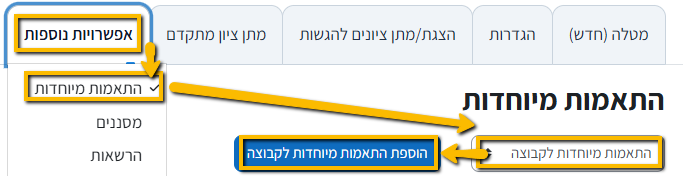 וללחוץ על "אפשרויות נוספות"-> "הגדרות מותאמות"->יש ללחוץ על הרשימה הגולשת ולבחור - "הגדרות קבוצה מותאמות" -> "הוספת הגדרות מותאמות לקבוצה":